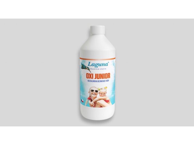 Přípravek Laguna OXI junior je kapalný přípravek vhodný pro všechny bazény (i dětské) s filtrací i bez filtrace s výrazným účinkem proti bakteriím, řasám, houbám, plísním, mykobakteriím a virům. Jeho dezinfekční funkce je založena na bázi synergického účinku peroxidu vodíku a stopového množství stříbra. Ošetřená voda nepáchne po chloru, nedráždí oči, sliznice a kůži, což jsou značné výhody proti chlorovým přípravkům.