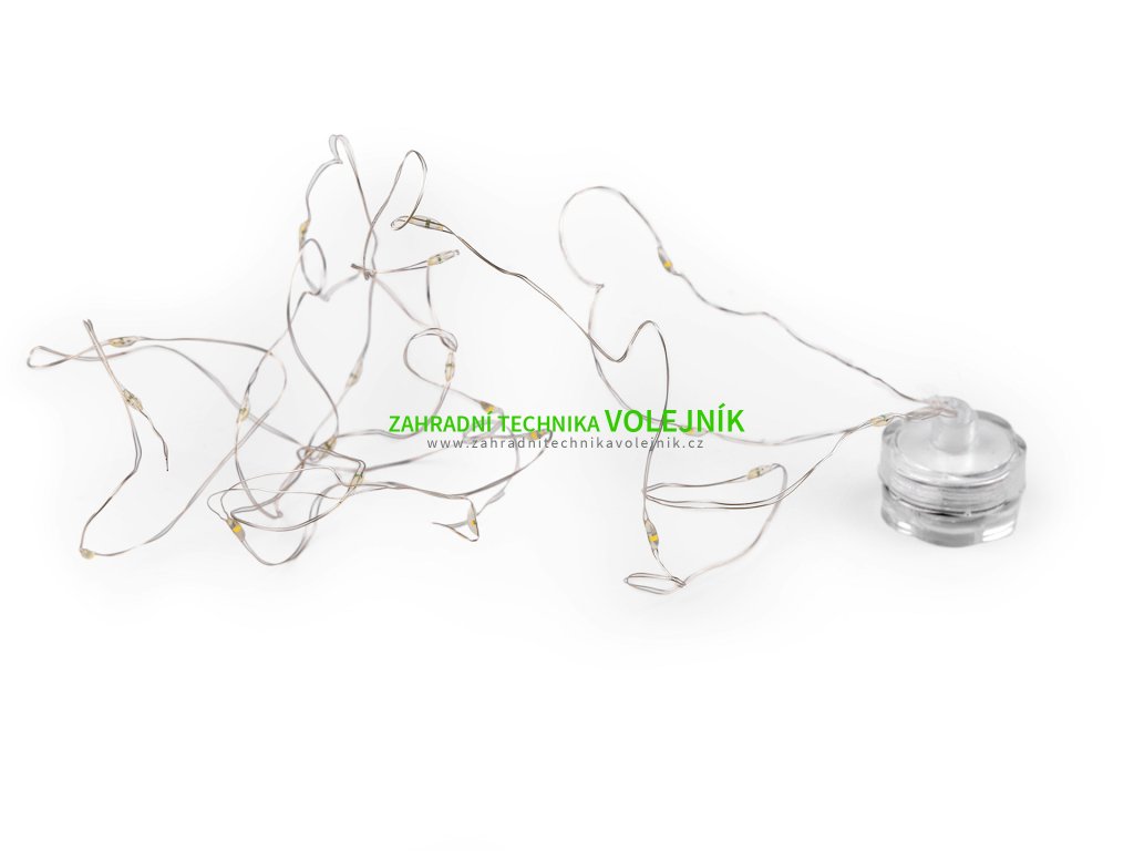 LED osvětlení je výjimečné v tom, že je voděodolné. Můžete ho bez problému zakomponovat do květinových aranžmá, do váz apod. Nádherně vynikne jako svatební dekorace. Najdete na něm 20 LED diod. Díky drátu ho můžete i dobře tvarovat. Svítí teplým světlem, nebliká.Baterie (2x CR2032) jsou součástí balení.