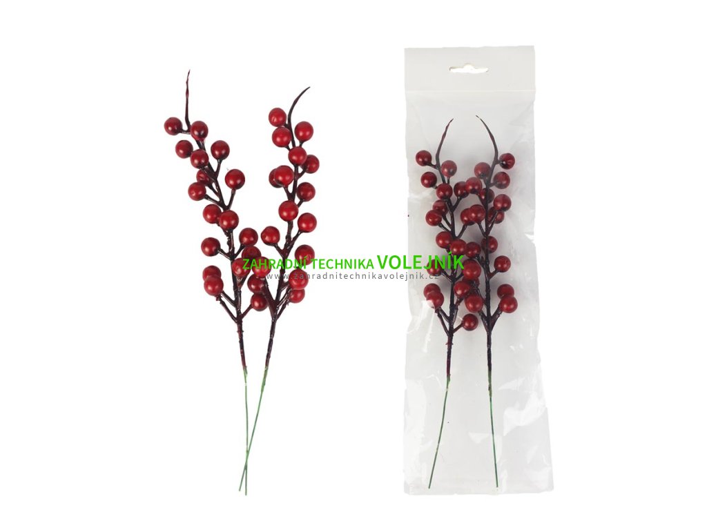 Dekorační větvičky s bobulemi.Balení obsahuje dvě větvičky.Rozměry : 4 x 2 cm, délka větvičky 26 cm.Barva : červená.Materiál : plast