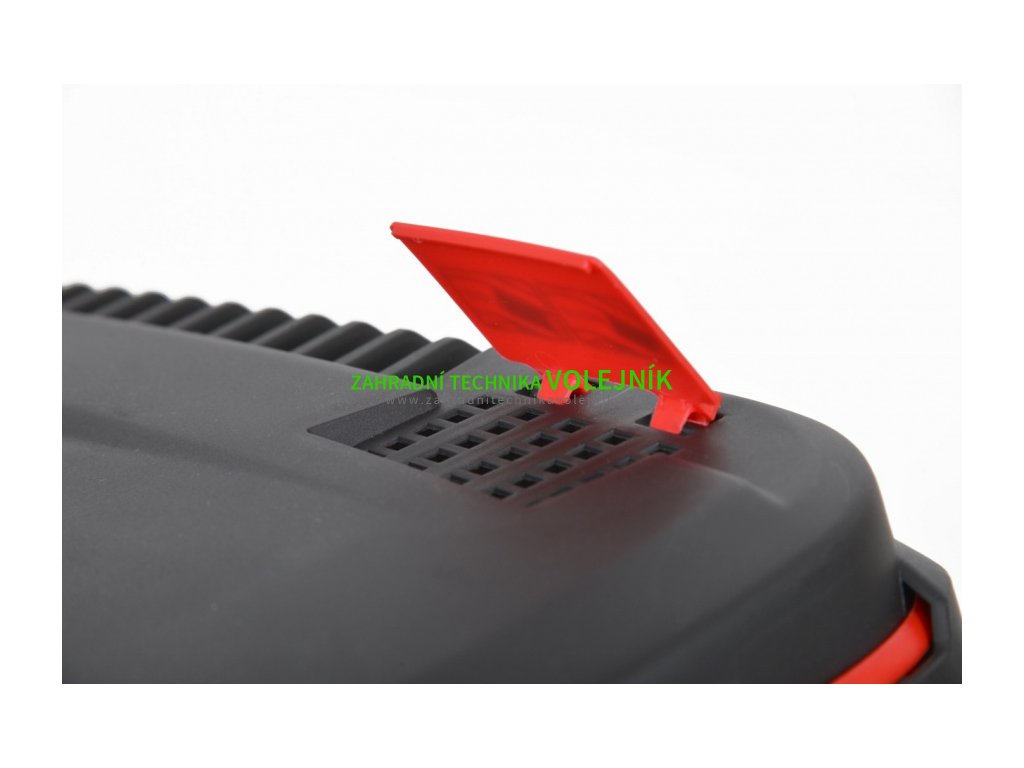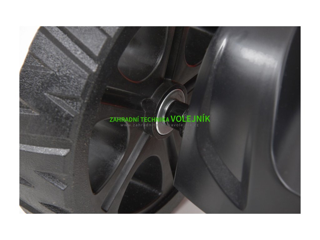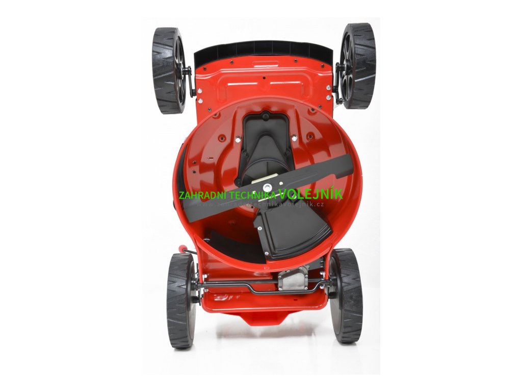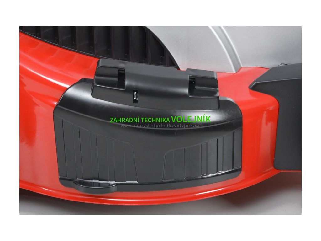 Základem sekačky je poctivé kovové šasi, které má nejen dostatečnou tuhost, ale obsluze zajistí i dostatečnou ochranu od případných předmětů odhozených náhodně nožem sekačky. Výkonný elektromotor se stará nejen o pohon nože, ale v případě této sekačky i pohon zadních kol pro pojezd. Díky této konstrukci je doporučená udržovaná plocha až 1200 m2. Rychlost pojezdu je 3,6 km/h a při pracovním záběru 460 mm jde práce opravdu od ruky. Nastavení výšky sekání se provádí centrálně jedinou pákou od 30 do 75 mm.