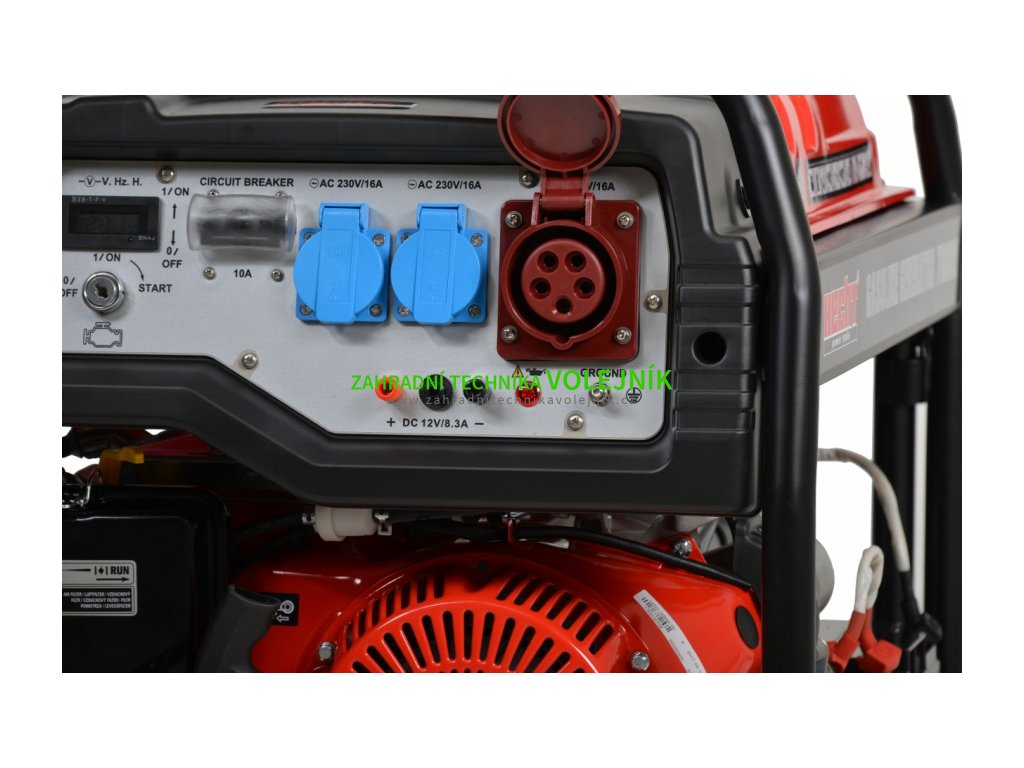 HECHT GG 8000 je relativně tichý a stabilní generátor elektrické energie. Vybaven je dvěma standardními zásuvkami 230 V / 50 Hz a jednou třífázovou zásuvkou 400 V / 50 H. Na panelu rovněž najdete výstup 12 V stejnosměrného napětí, které lze využít například pro nabíjení olověných akumulátorů. Dvě zásuvky 230 V lze využít pro napájení standardních jednofázových spotřebičů, třífázovou 400 V zásuvku využijete především pro pohon zařízení s výkonnými třífázovými motory.
