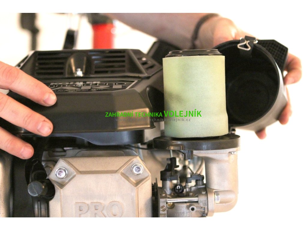 Nový motor KOHLER COMMAND PRO CV224 se vyznačuje především vysokým krouticím momentem, ocelovou vložkou válce, olejovým čerpadlem a filtrem a plnohodnotným tlakovým mazáním. Čtyřstupňový cyklonický vzduchový filtr zajišťuje přísun čistého vzduchu do sání, což je velká výhoda jak při sekání vysoké trávy, obracení sena i zametání. Techničtí znalci jej jistě ocení.