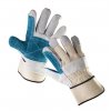 Rukavice z hovězí štípenky s podšívkou a zesílenou vrstvou v dlani, s bílou bavlněnou tkaninou na hřbetu a s tuhou manžetou.
