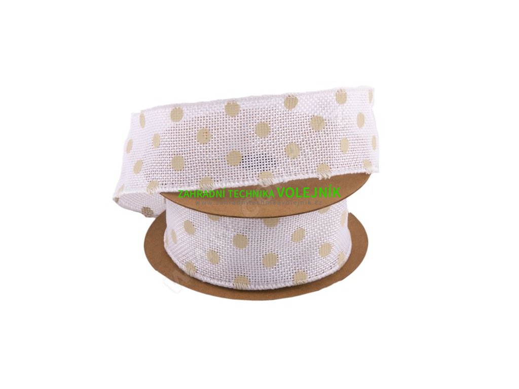 Potřeby pro tvoření Floristika a dekorace Stuhy Jutová stuha - puntík 4 cm x 6,4 m - bílá