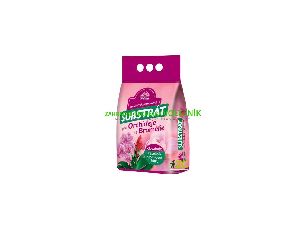 Substrát pro Orchideje a bromélie je speciální substrát určený pro přesazování a pěstování všech druhů orchidejí. Složení substrátu je vyvinuto přesně podle potřeb orchidejí, které vyžadují vysoký obsah vzduchu v kořenové zóně. Skládá se z kvalitní piniové kůry a vláknitého rašeliníku ( Sphagnum ).