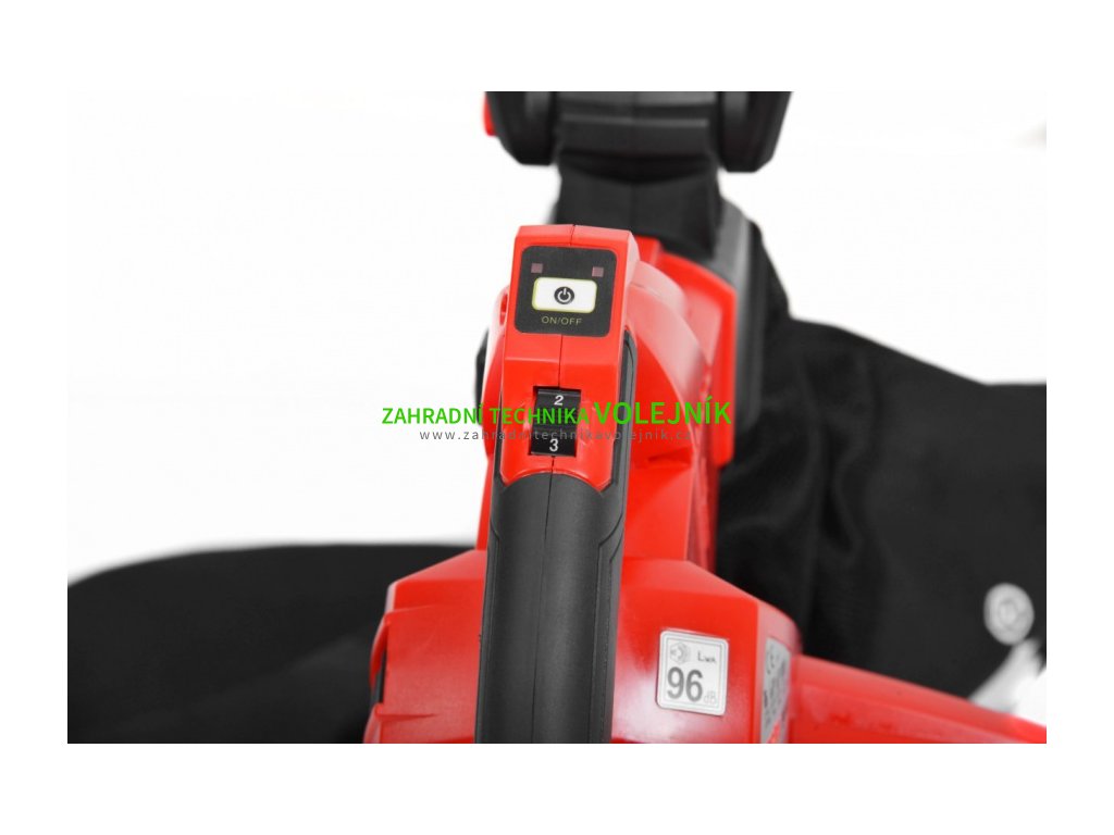 V režimu vysavače je v prvním stupni listí nasáváno do turbíny opatřené ocelovými mulčovacími noži, kde je pomleto na drobné kousky. Mulč pak putuje do 20 l sběrného vaku, který je takto pomletým listím dokonale plněn. Výkon vysavače je možné plynule nastavovat otočným ovladačem na madle. Plynulou regulací sacího výkonu oceníte především tam, kde by při vsávání listí hrozilo například nasátí kamení. Snížením výkonu lze zajistit, že bude nasáváno pouze lehké listí.