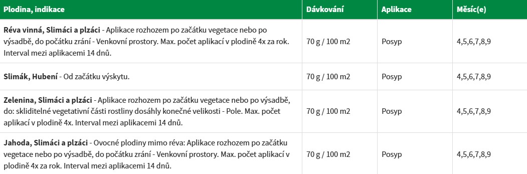 Granulovaný přípravek proti všem druhům slimáků a plzáků při pěstování polních plodin, ovoce, zeleniny a révy. Zbavte se slimáků rychle a efektivně.