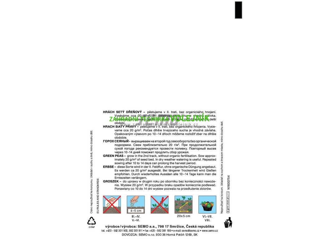 Velmi raná odrůda hrachu zahradního, vynikající pro samozásobení. Porost dosahuje výšky 60 - 80 cm, rostliny jsou silné, bohatě olistěné, se světle zelenými listy. Lusk je dlouhý asi 10 cm, ostře ukončený, prohnutý, s 10 - 12 zrny v lusku. Zrno je velké, tmavě zelené, HTS 220 g. Je vhodný pro zahrádkáře (má dlouhé lusky a velké zrno) i pro velkopěstitele (kvalitní surovina pro mrazírny i konzervárny). V sortimentu firmy SEMO je nahraditelný odrůdou JUNOS, s níž je srovnatelný v ranosti i kvalitě zrna, odlišuje se od ní barvou listu a habitem rostlin. Dosahuje nadprůměrné výnosy zeleného zrna.