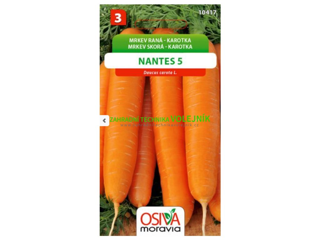 NANTES 5 (dříve NANTÉSKÁ) – tradiční oblíbená odrůda rané karotky s delším, téměř válcovitým kořenem, tupě ukončeným. Povrch je hladký, červenooranžový. Dužnina je jemná, výborné chuti, červenooranžová, často se světlejším středem. Plastická odrůda pro rané sklizně. Ze 100 m2 lze sklidit 290 – 310 kg kořenů. Vegetační doba 115 – 125 dní.