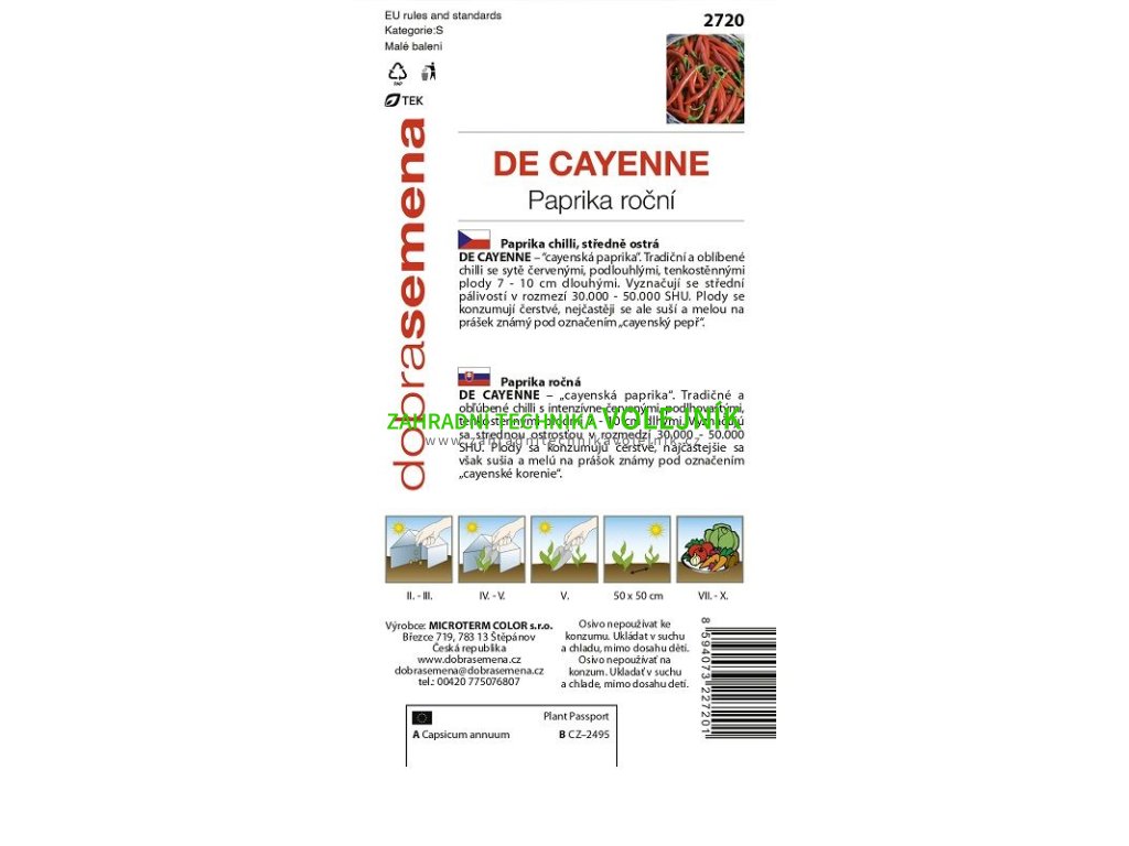 Zahrádkářské potřeby Osiva a sadba Semena Zelenina PAPRIKA DE CAYENNE - chilli 0,4 g