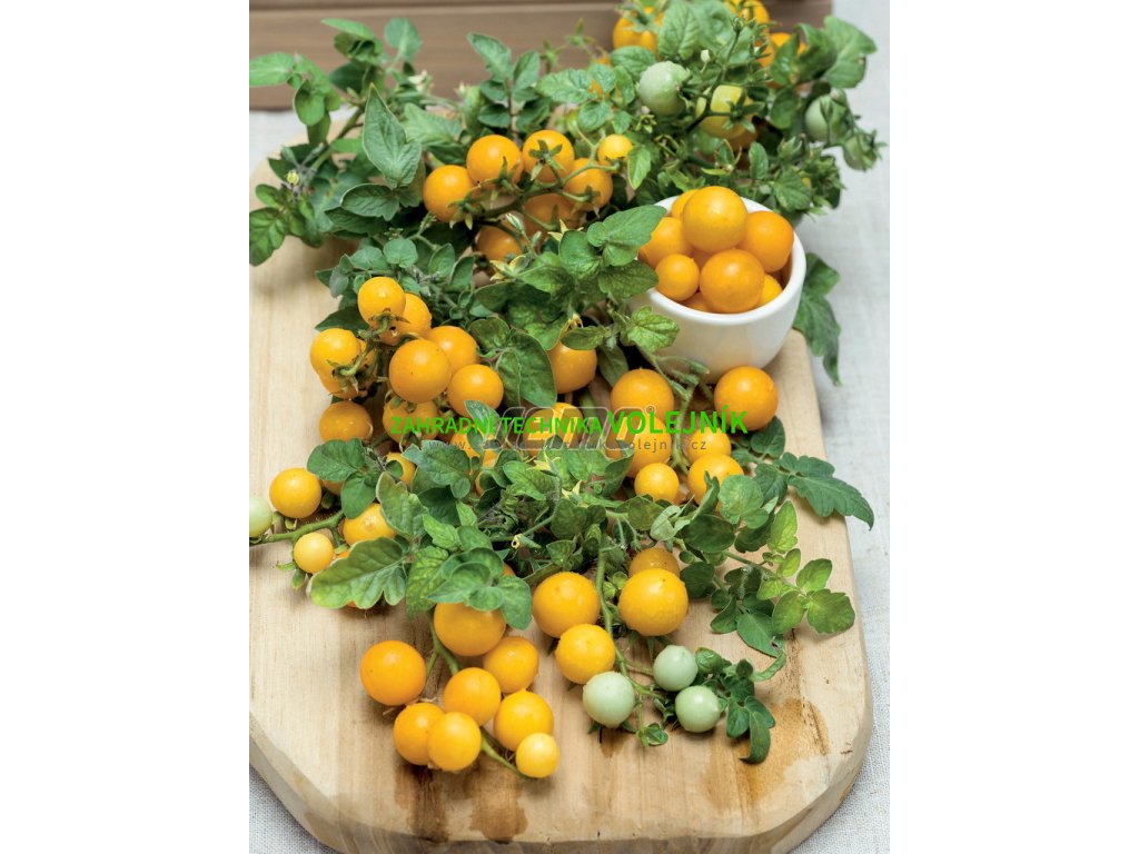 Velmi rané kompaktní rajče se žlutými kulatými třešňovými plody 15–20 gramů.
